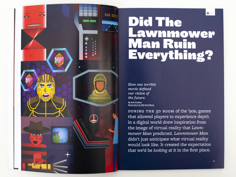 I commissioned the very talented Dark Igloo and kidmograph to create the cover artwork, which referenced the “Virtual Wonderland” of ‘90s VR imagery. Along with the print version of the cover, we created an animated version to be used for promotion of the issue.
